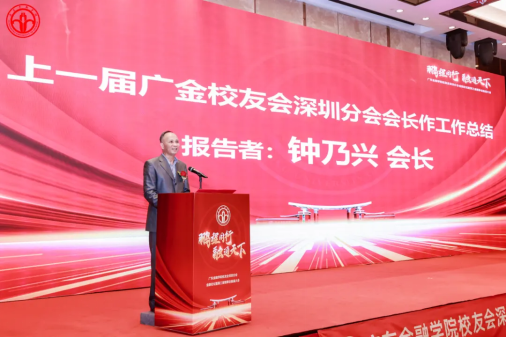 活动第二阶段,广东金融学院校友会深圳分会第三届理事会换届大会隆重举行。广东金融学院校友会深圳分会第二届理事会会长钟乃兴进行了热情洋溢的工作总结。他向出席的领导、嘉宾和校友们表示热烈欢迎,并回顾了校友会的创立及举办的系列活动。钟会长感慨良多,详述了校友会从无到有的成长历程及第二届理事会举办的一系列活动,包括座谈会、交流会、户外拓展等活动,增进了校友之间的感情,也为共同进步提供了平台。最后,钟会长表示将继续加强合作,为母校的发展贡献力量。祝愿深圳校友会越办越好,成为连接广金人情感的纽带,书写更加辉煌的未来。