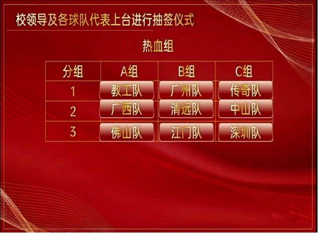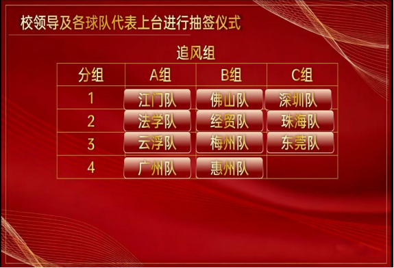 党委宣传部部长张绍图、学生工作处处长容志豪、体育教研部主任曾播思、团委书记欧江、校友工作办公室全体人员、各地方校友分会代表、各参赛队代表、师生代表共同参与抽签仪式。