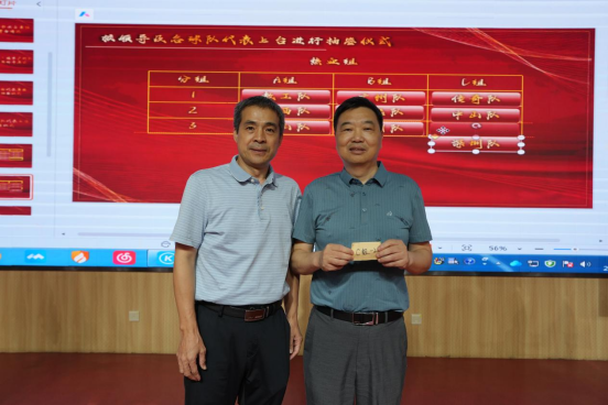 (校党委副书记刘春阳上台抽取追风组种子队、非种子队分组抽签顺序)