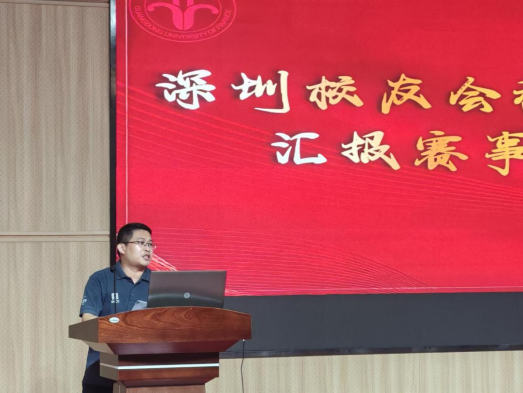(深圳校友分会秘书长古景恒汇报赛事筹备情况)