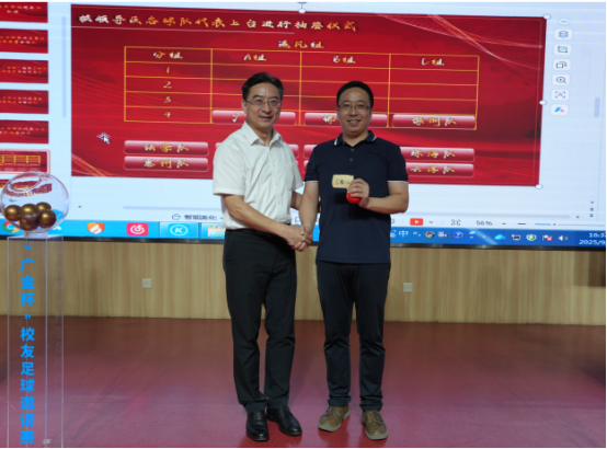 2025年9月28日,第六届”广金杯”校友足球邀请赛抽签仪式在北阶103举行。学校党委副书记刘春阳出席抽签仪式并致辞。